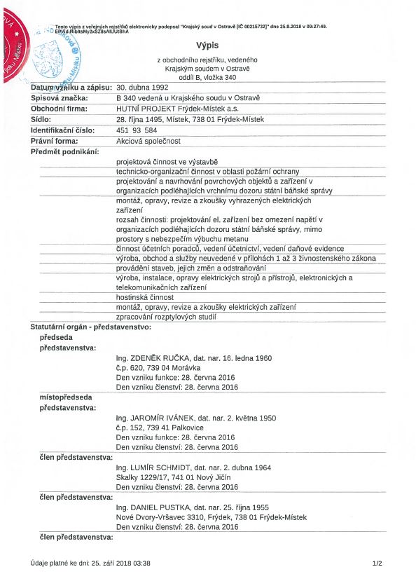 HUTNÍ PROJEKT Frýdek-Místek a.s.