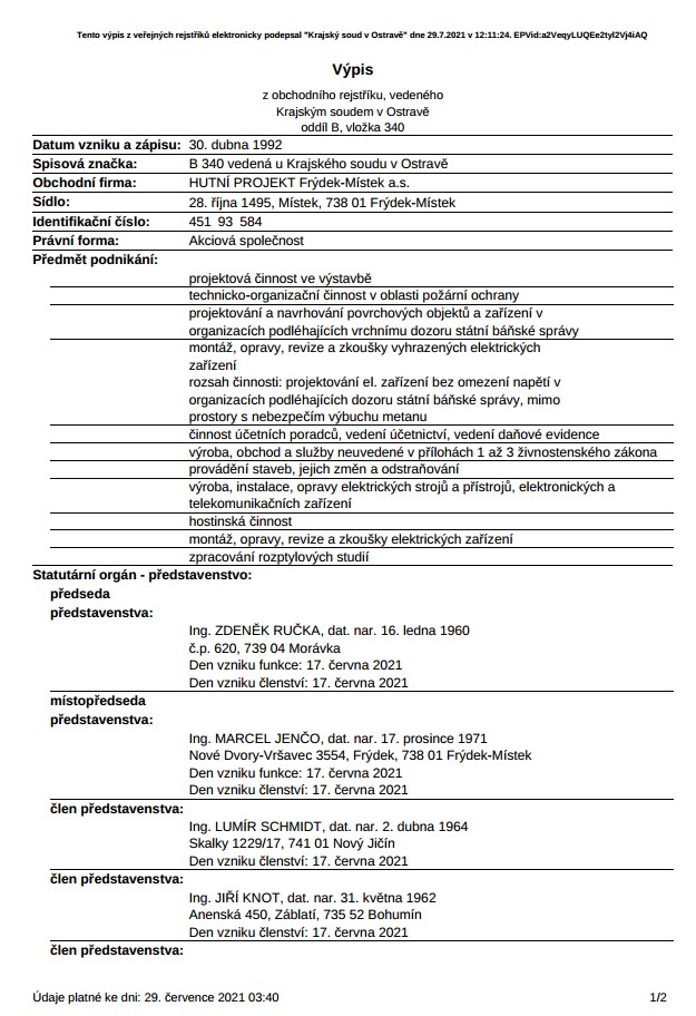 HUTNÍ PROJEKT Frýdek-Místek a.s.
