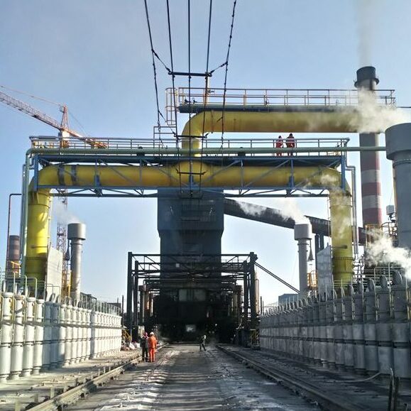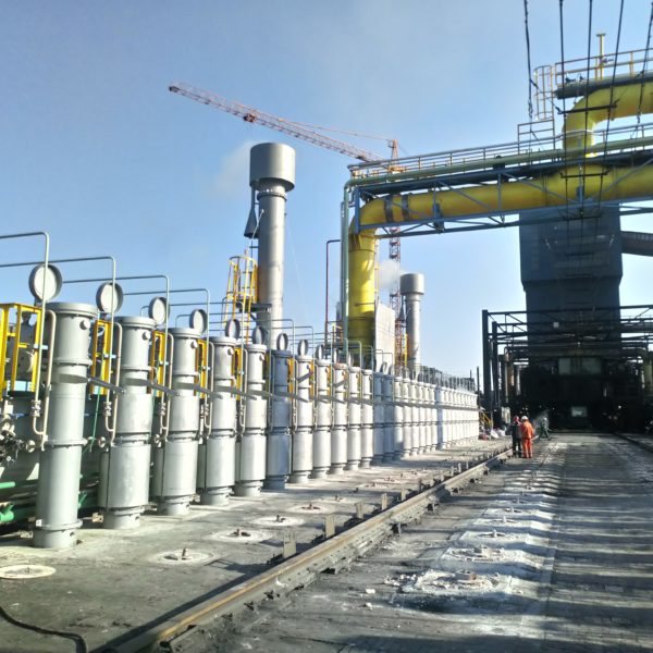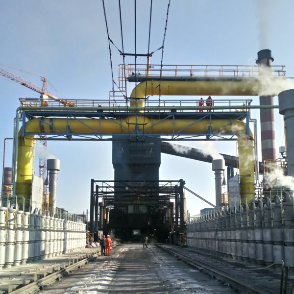 Next stage of the replacement of the collector mains on the large-volume coke oven battery block has been realized by reason of unsatisfactory condition of existing facilities. During the reconstruction, the collecting mains were replaced on one block of the battery. The project has been realized during the full operation of adjacent blocks of COB. Relevant block of COB was without coke and there were kept special thermal regime in it. Replacement was successfully executed in planned term 24 days and on agreed conditions.